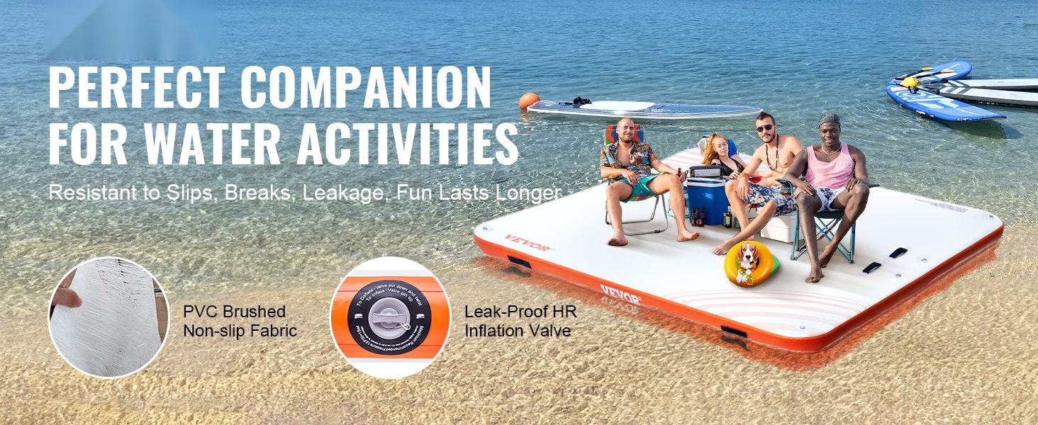 Luo oma kelluva saari altaalle, rannalle tai merelle. 15 x 6 ft (noin 4.57 x 1.82 m) kokoinen ilmatäytteinen laituri tarjoaa tukevan ja pitävän alustan auringonottoon, uimiseen, joogaan ja yhteiseen ajanviettoon vedellä.