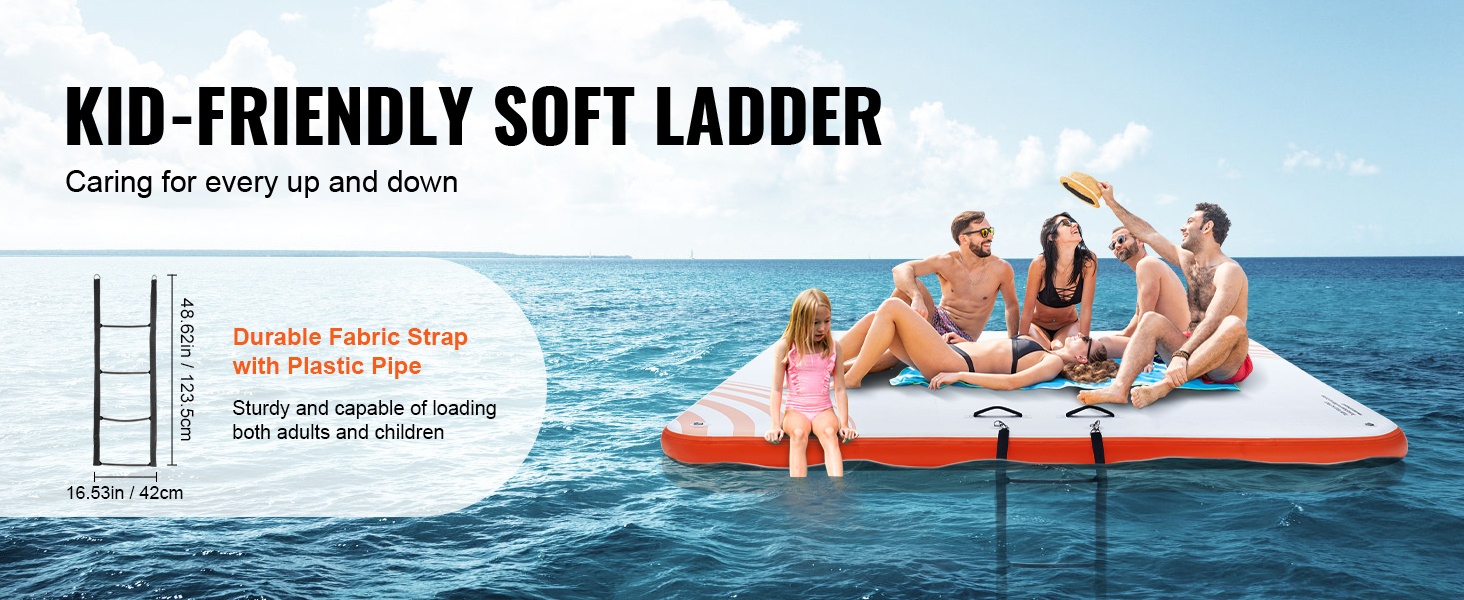 Neljän askelman pehmeä irrotettava tikas helpottaa laiturille nousemista ja sieltä poistumista. Se on erityisen hyödyllinen lapsille ja käyttäjille, jotka eivät ole varmoja uimataidostaan, ja lisää siten käyttömukavuutta ja turvallisuutta.