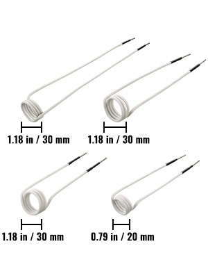 - 2 x 29-1/2" (750 mm) vapaasti muotoiltavaa kelaa
