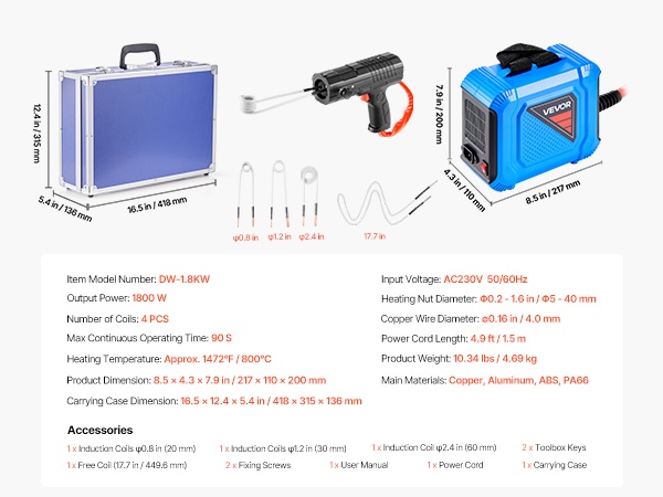 - Tehokas 1100W induktiokuumennus ruostuneiden pulttien ja muttereiden irrotukseen