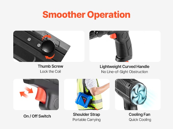 Päivitetty lämmönpoistorakenne, useat ilmanvaihtoaukot ja sisäinen jäähdytystuuletin auttavat estämään ylikuumenemisen. Kirkas LED-valo helpottaa työskentelyä pimeissä tai ahtaissa tiloissa ja muistuttaa olemaan koskematta kuumiin keloihin. Teksturoitu kahva on luistamaton ja tuntuu miellyttävältä kädessä.