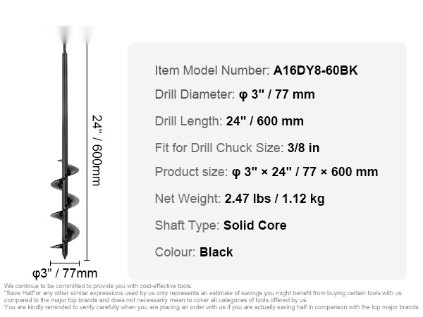 - Sopiva poraistukan koko: 3/8 in