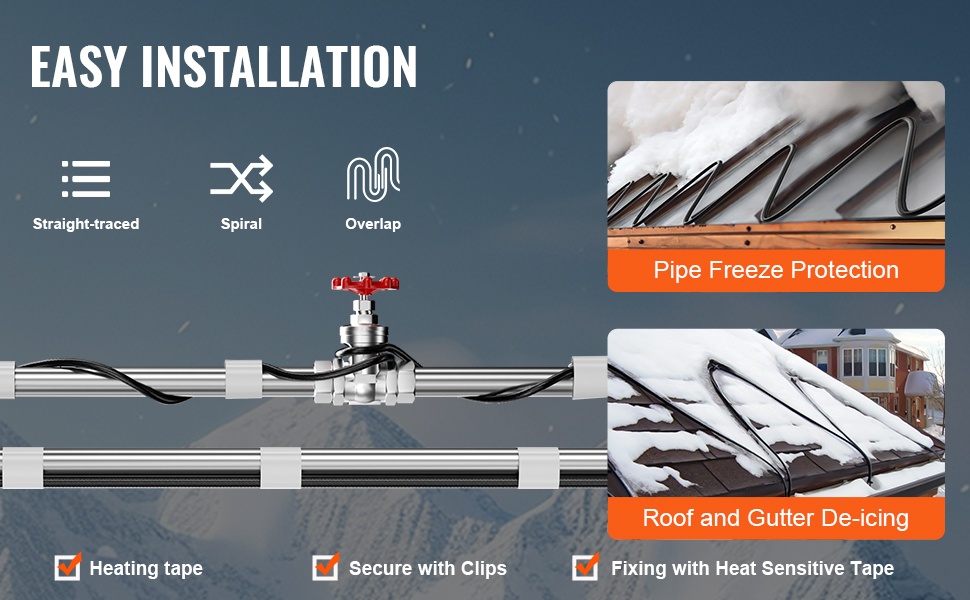 Esikoottu lämmityskaapeli mahdollistaa joustavan asennuksen erilaisiin putki- ja kattorakenteisiin. Kaapeli voidaan asentaa suorana linjana, spiraalina tai ristiin kietomalla, mikä helpottaa erilaisten pituuksien ja muotojen sovittamista.