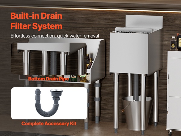 Pohjassa oleva säilytyshylly tarjoaa lisätilaa tarvikkeille, kuten juomakoreille, tarjoiluastioille tai puhdistustarvikkeille, jolloin työskentelytila pysyy siistinä ja tarvittavat välineet ovat helposti saatavilla.