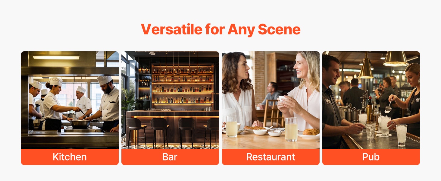 - Sopii ammattikeittiöihin, baareihin, ravintoloihin ja tapahtumakäyttöön