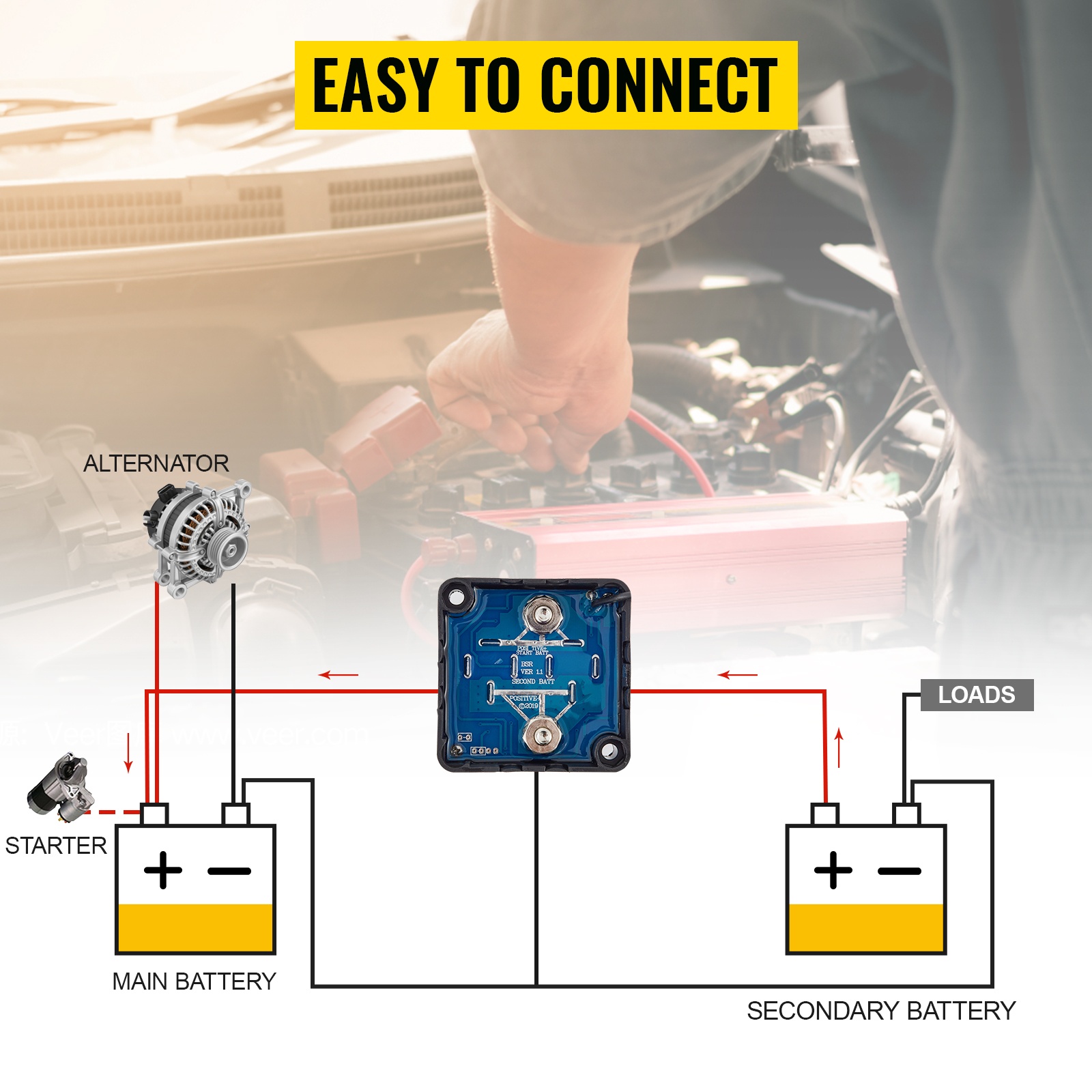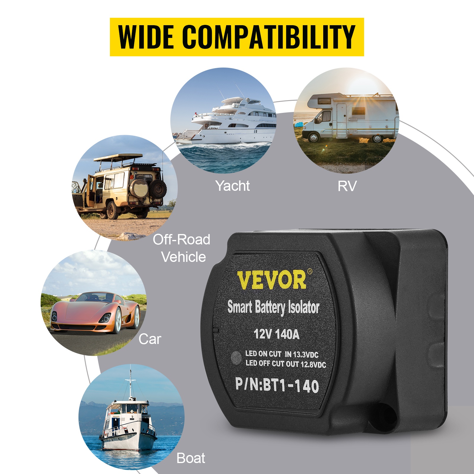 Tämä automaattinen jakorelepakkaus mahdollistaa lisävarusteiden käytön erillisestä akusta, kun ajoneuvon moottori ei käy. Pääakku pysyy silti ladattuna, jotta ajoneuvo on käyttövalmis. Pakkauksessa on kaikki tarvittavat osat asennukseen, ja se soveltuu useimpiin henkilöautoihin, matkailuautoihin, pakettiautoihin, maastoajoneuvoihin, veneisiin, jahteihin, ATV- ja UTV-ajoneuvoihin sekä muihin 12V-järjestelmiin.