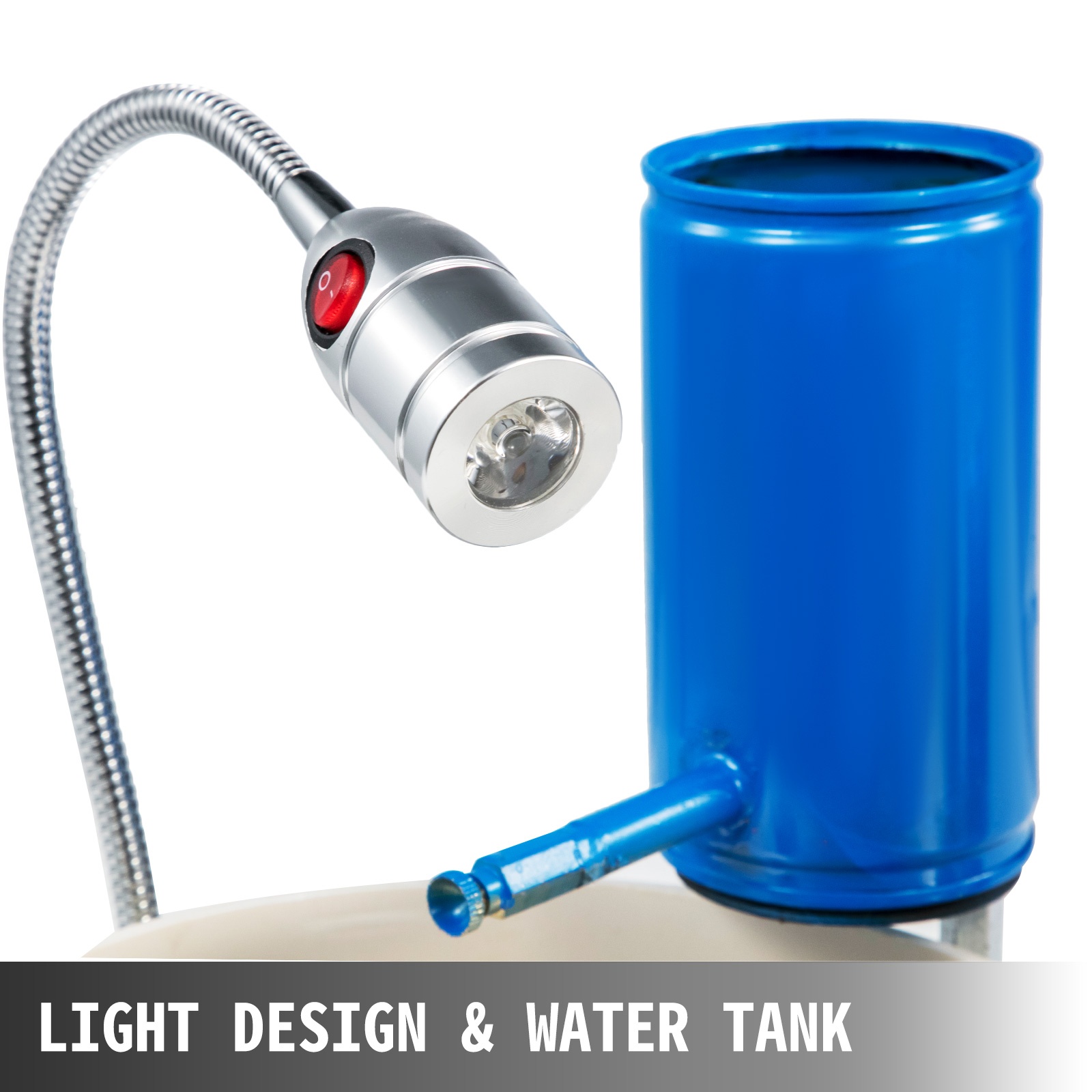 - Säädettävä työvalo ja irrotettava vesiallas hiontapinnan viilennykseen