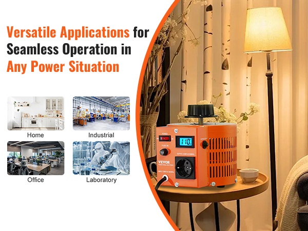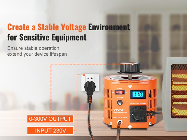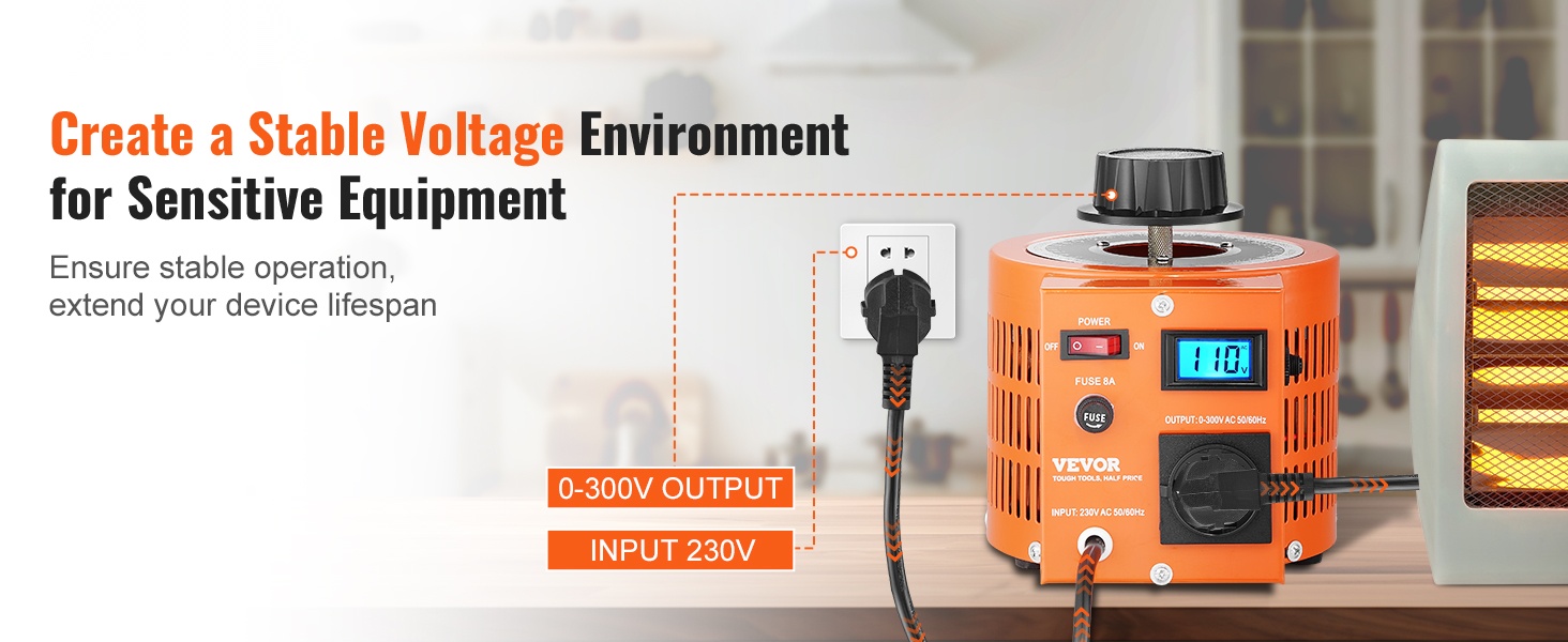 Muuntaja soveltuu kotiin, teollisuustiloihin ja toimistoihin, joissa halutaan tasainen ja säädettävä jännite. Se auttaa ehkäisemään jännite-epävakaudesta johtuvia ongelmia ja voi pidentää laitteiden käyttöikää.