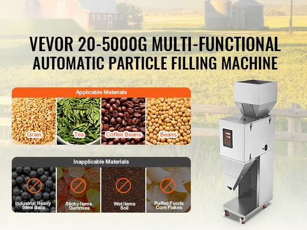Ennen täyttökoneen hankintaa huomioi, että kaikki materiaalit eivät sovellu laitteeseen. Teräskuulat tai lasihelmet voivat kerätä staattista sähköä. Tahmeat aineet eivät välttämättä virtaa tasaisesti, ja kosteat tai paisutetut elintarvikkeet voivat aiheuttaa tukoksia.