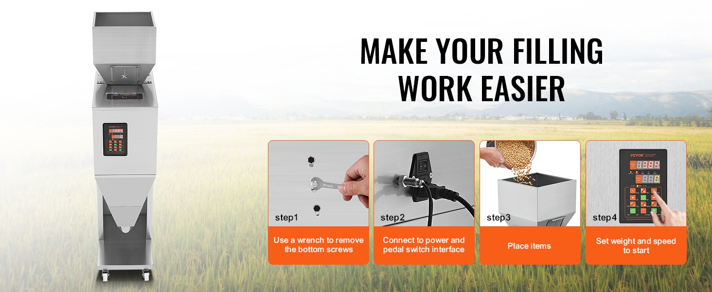 Manuaalinen täyttö voi olla työlästä ja epätasaista. Tämä puoliautomaattinen täyttökone helpottaa työtä merkittävästi: se annostelee materiaalin valitsemasi painon mukaan ja vähentää manuaalista mittaamista ja punnitsemista.