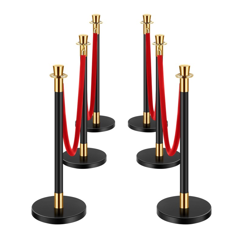 - 6 teräksistä jonotolppaa mustalla pinnalla