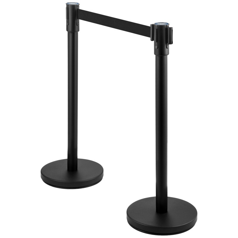 Neljän jonotolpan setti helpottaa ihmisvirtojen ohjausta ja alueiden jakamista eri käyttötarkoituksiin. Ruostumattomasta teräksestä ja raudasta valmistetut tolpat kestävät hyvin käyttöä ja ovat helppohoitoisia. Mustat, sisäänkelautuvat hihnat mahdollistavat joustavan rajauksen erilaisissa tiloissa, kuten pankeissa, lentokentillä, tapahtumissa ja julkisissa tiloissa.