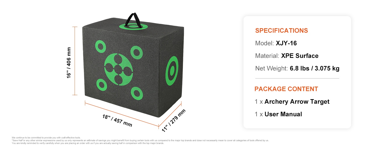 - Koko: 16"x18" jousiammuntatausta, ammuttavissa kaikilta sivuilta