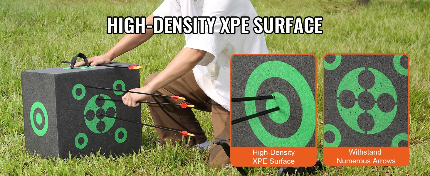 Korkeatiheyksinen XPE-vaahtopinta kestää lukuisia osumia. Materiaali palautuu hyvin nuolen irrotuksen jälkeen, mikä pidentää taustan käyttöikää ja tekee harjoittelusta sujuvaa.