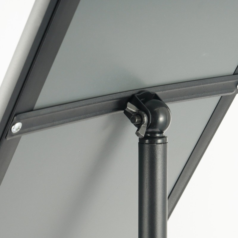 Julisteteline on valmistettu laadukkaista materiaaleista: rungossa on alumiinikehys ja suojana 0.4 mm PVC-levy. Rakenne on kestävä, vedenpitävä ja korroosionkestävä, joten julisteet kestävät käyttöä eivätkä haurastu tai vaurioidu helposti.