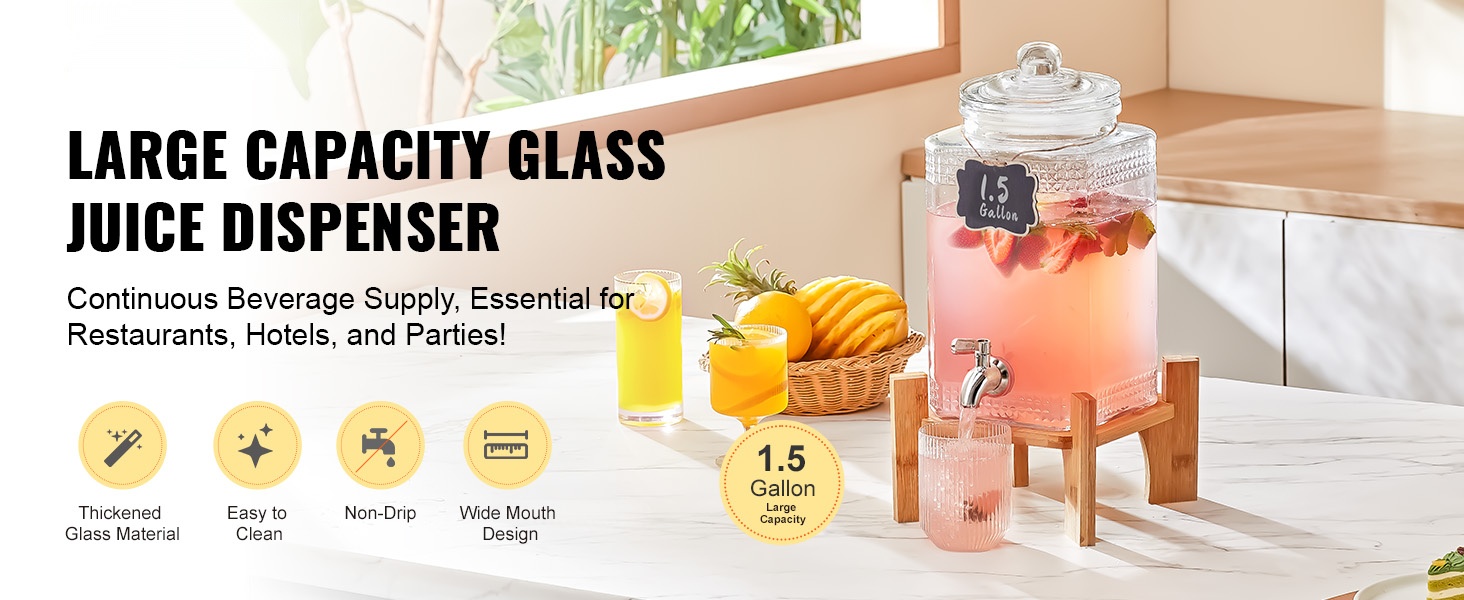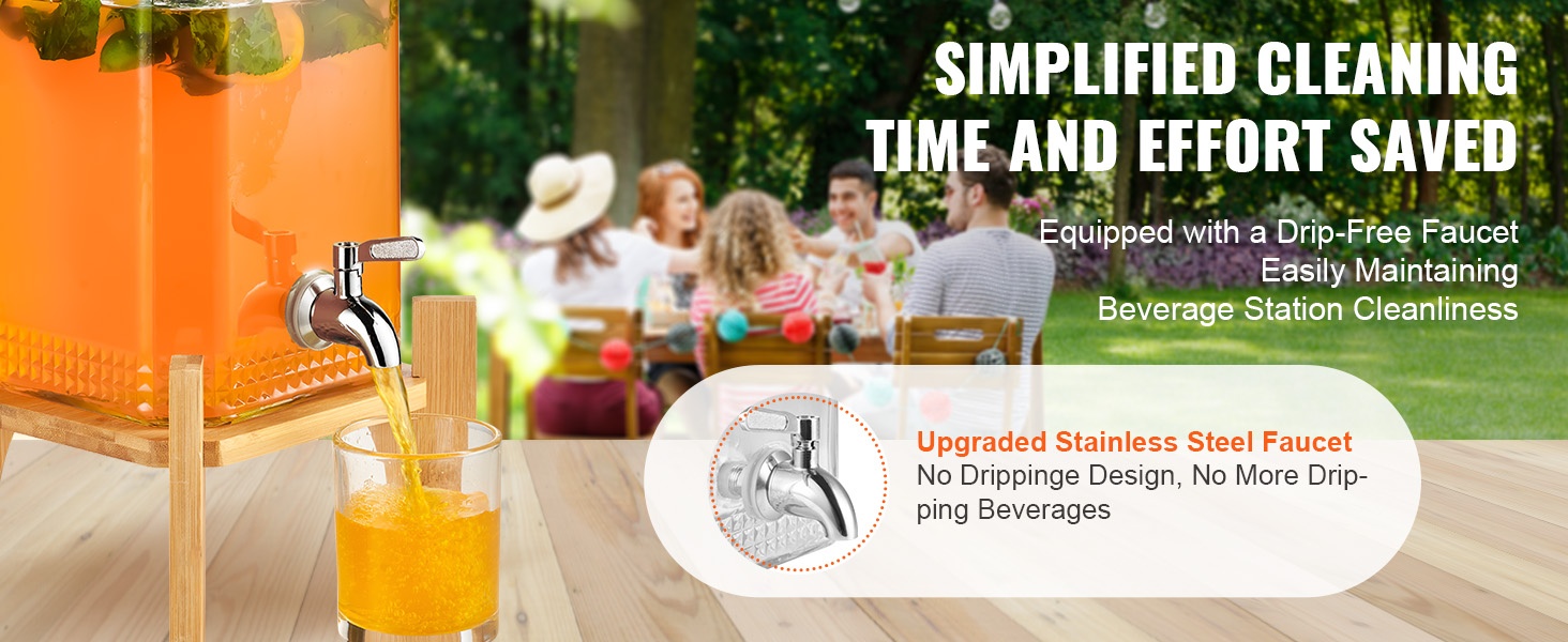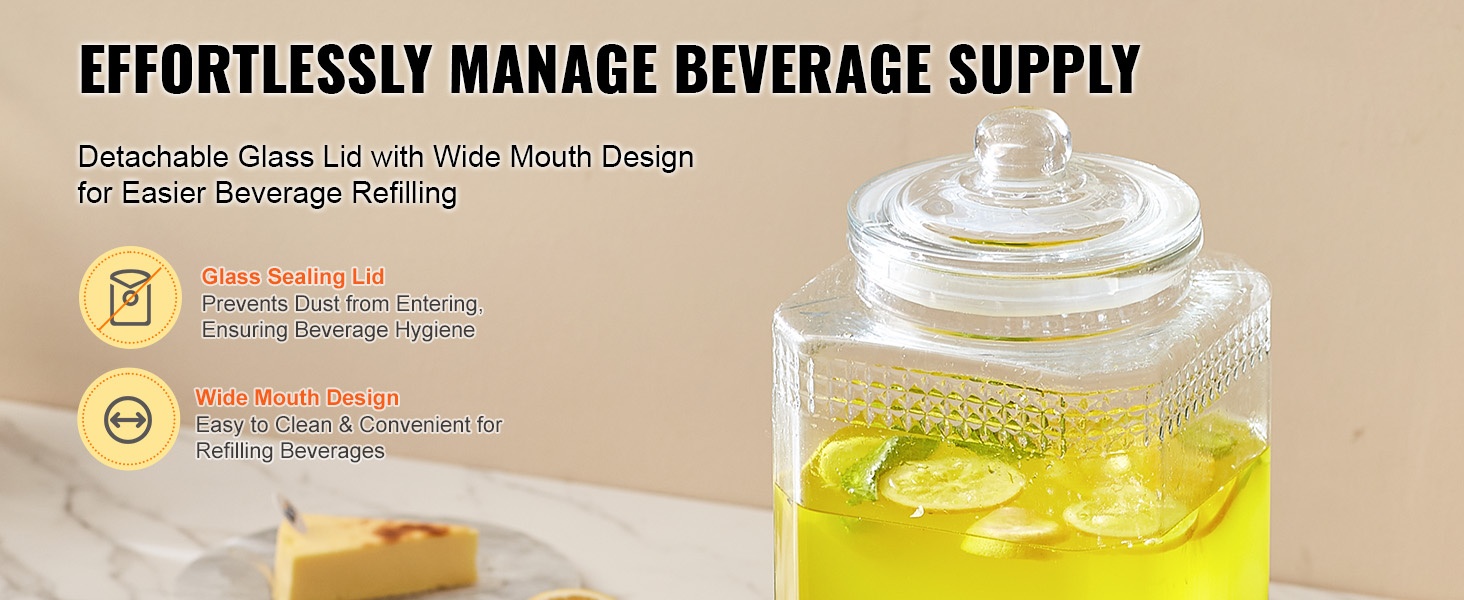 Tässä juoma-annostelijassa on kokonaiskapasiteettia 16 L / 4.2 gallonaa (8 L / 2.1 gallonaa per sylinteri). Kaksisylinterinen rakenne mahdollistaa kahden eri juoman tarjoilun samanaikaisesti ja varmistaa jatkuvan juomatarjonnan.