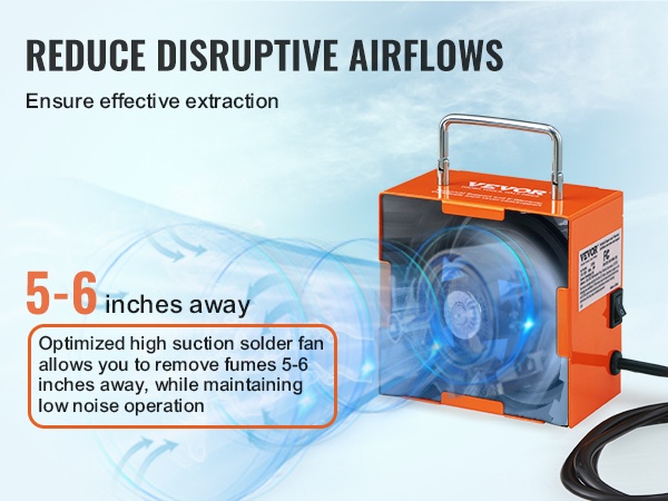 Laite poistaa juotossavun ja hienot hiukkaset suoraan työkohteen läheltä. 100W moottori ja 240m³/h ilmavirta varmistavat, että savu ei leviä huoneeseen, vaan kulkeutuu nopeasti suodattimien läpi.