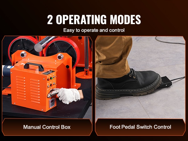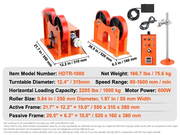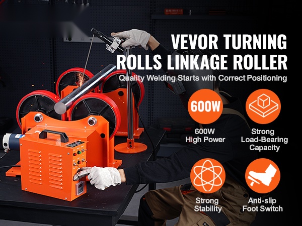 Tämä kääntörullasto helpottaa sylinterimäisten kappaleiden hitsausta. 600W suuren väännön moottori huolehtii tasaisesta pyörityksestä, ja vaakasuuntainen kantavuus on 2205 lbs / 1000 kg. 9.84-tuumaiset PU-rullat, joissa on sisä- ja ulkoreiät, soveltuvat työkappaleille, joiden ulkohalkaisija on 25–800 mm ja 200–1400 mm.