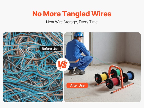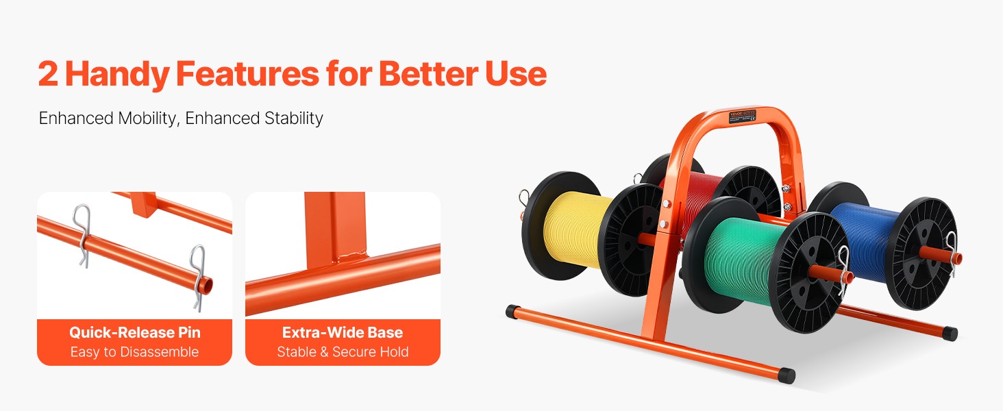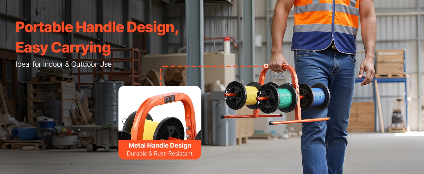 Kestävästä Q195‑teräsputkesta valmistettu käsiteline on suunniteltu pitkäaikaiseen käyttöön. Se tukee 4–8 kela-akselia, ja kelan suurin halkaisija on 9.45 tuumaa. Paino on 4.85 lbs / 2.2 kg, joten telinettä on helppo kantaa ja siirtää. Jauhemaalattu pinta suojaa ruostumiselta ja kulumiselta, mikä tekee telineestä sopivan monenlaiseen kaapelinhallintaan teollisuudessa ja muissa ympäristöissä.