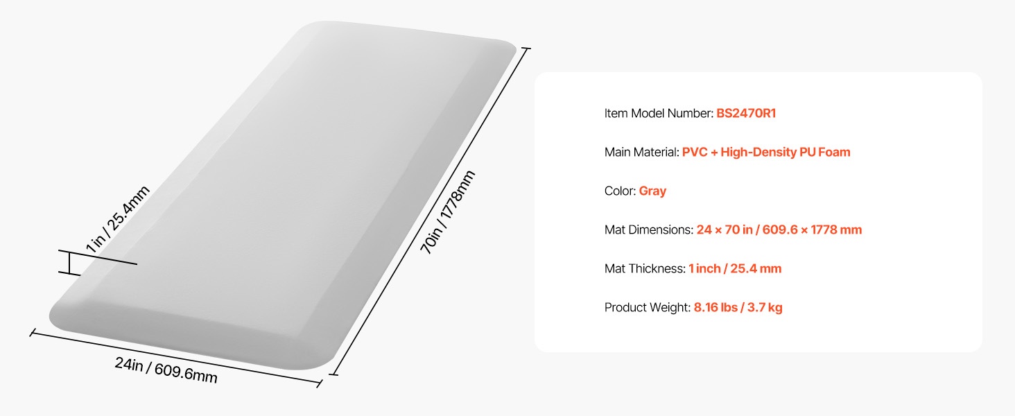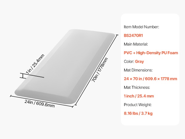 Maton mitat: 24 × 70 in / 609.6 × 1778 mm