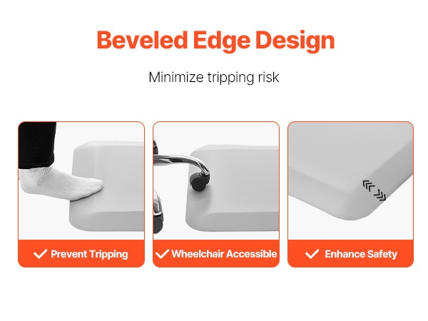 Viistetyt reunat auttavat ehkäisemään kompastumisia ja tekevät matosta helppokulkuisen pyörätuoleille, rollaattoreille ja muille liikkumisen apuvälineille. Tämä vähentää kaatumisriskiä ja parantaa käyttömukavuutta jokapäiväisessä liikkumisessa.