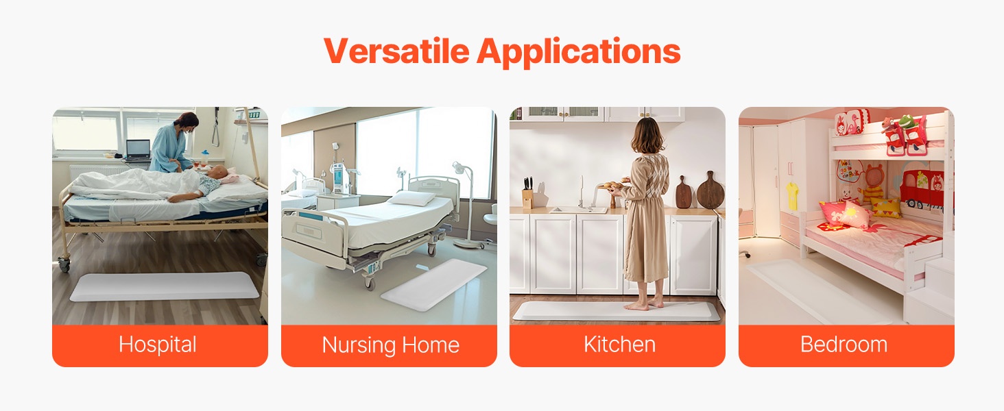 Tämä 24 × 70 tuuman kaatumismatto on suunniteltu lisäämään turvallisuutta iäkkäille, potilaille ja liikuntarajoitteisille. 1-tuumainen paksu rakenne, PVC-pintakuviointi ja sisäinen korkeatiheyksinen PU-vaahto vaimentavat iskuja tehokkaasti. Kaksinkertainen liukuestesuoja ja viistetyt reunat auttavat ehkäisemään liukastumisia ja helpottavat pyörätuolin sekä muiden apuvälineiden kulkua.