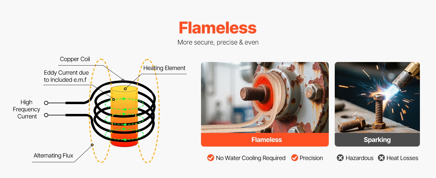 Induktiolämmitin soveltuu erityisesti ruostuneiden ja jumittuneiden pulttien, muttereiden ja muiden metalliosien irrotukseen ajoneuvoista, koneista ja laitteista. Liekitön lämmitys vähentää palovaaraa ja sopii kohteisiin, joissa ympärillä on herkkiä osia tai materiaaleja, joita ei haluta kuumentaa.