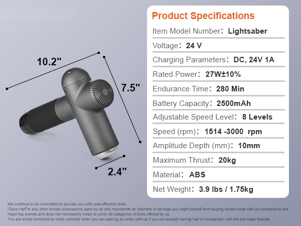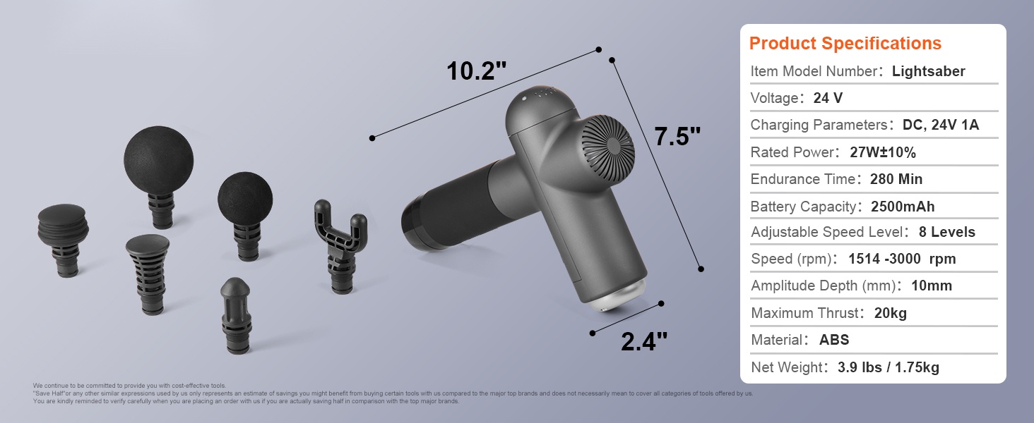 Kompakti, kädessä pidettävä lihashierontavasara syväkudoshierontaan ja lihasjännityksen lievitykseen. Laitteessa on tehokas mutta hiljainen harjaton moottori, 5 säädettävää nopeustasoa, 6 vaihdettavaa hierontapäätä sekä 7.4V 2500mAh akku, jotka auttavat kohdistamaan lihasväsymystä ja -kipua tarkasti ja hallitusti.