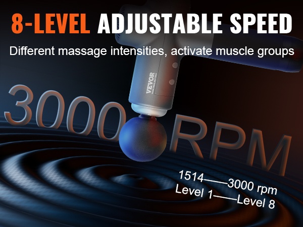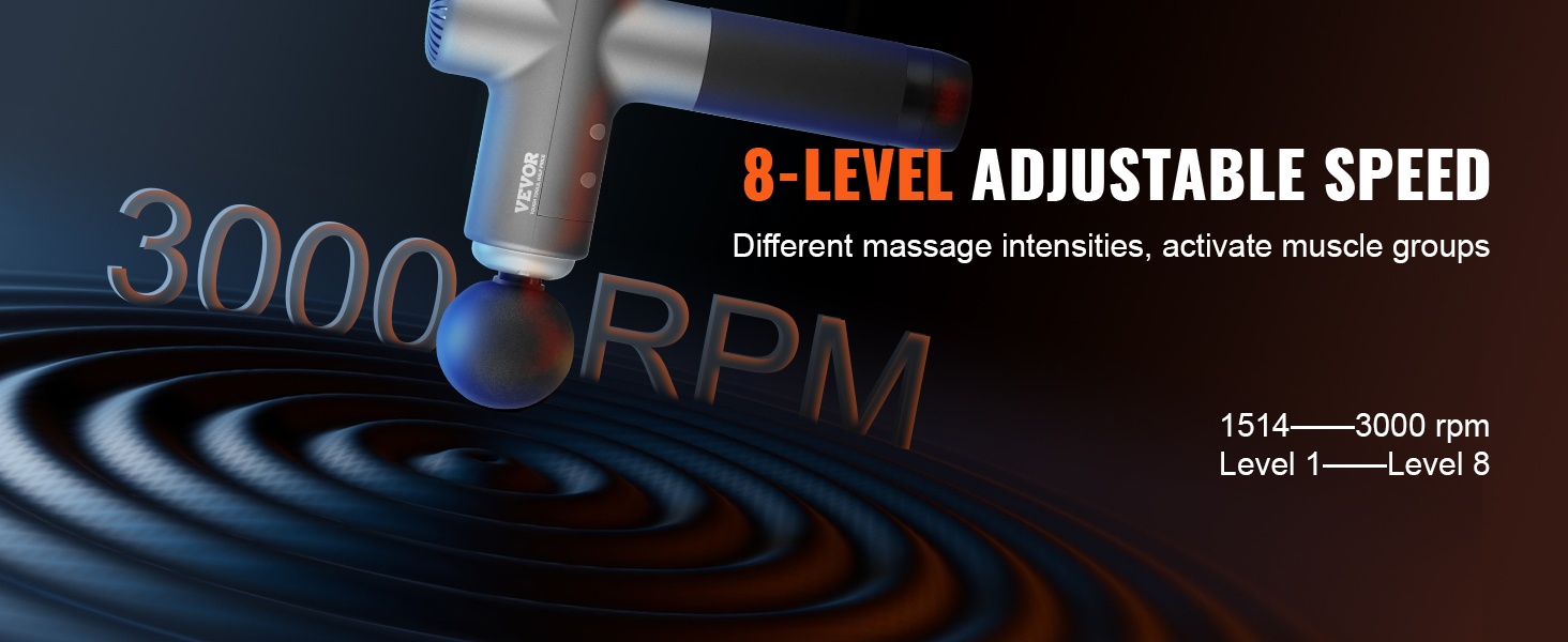 Hierontavasaran 5 säädettävää nopeustasoa tarjoavat intensiteetin välillä 2034–2984 rpm. Voit valita kevyemmän rentoutuksen tai voimakkaamman syväkudoshieronnan tarpeesi mukaan, aktivoida lihasryhmiä ja helpottaa lihasväsymystä nopeasti.