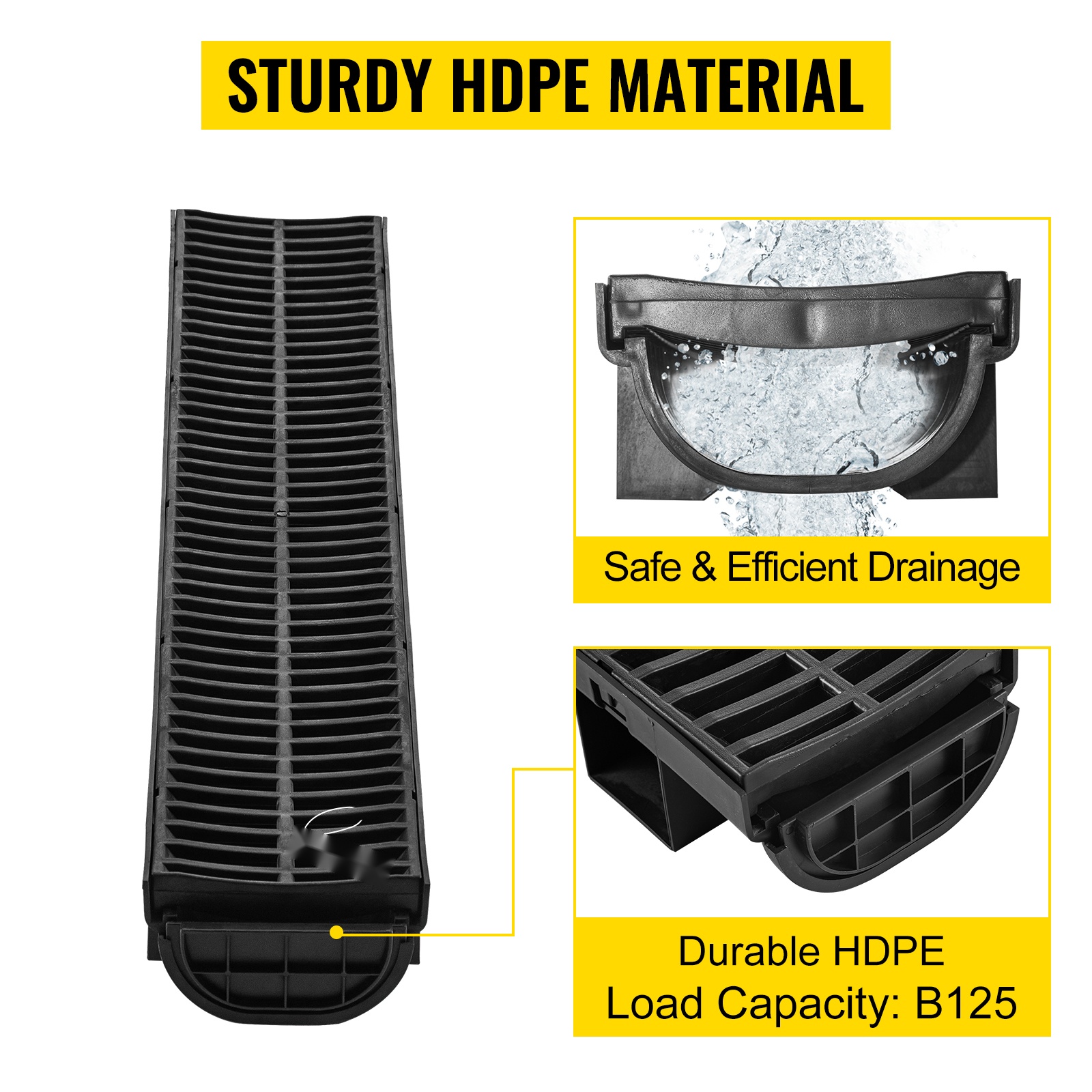 HDPE-muovi muodostaa sileän ja kestävän sisäpinnan, joka ohjaa veden pois tehokkaasti. Kuormitusluokitus A15-B123 tekee kourusta sopivan ajoteiden ja autotallin edustan kuormituksille.