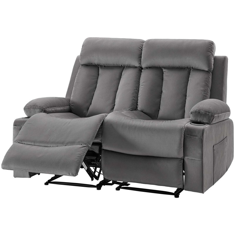 Kaksipaikkainen sähköinen lepotuolisohva harmaa samettiverhoilu lämmitys hieronta USB-portit