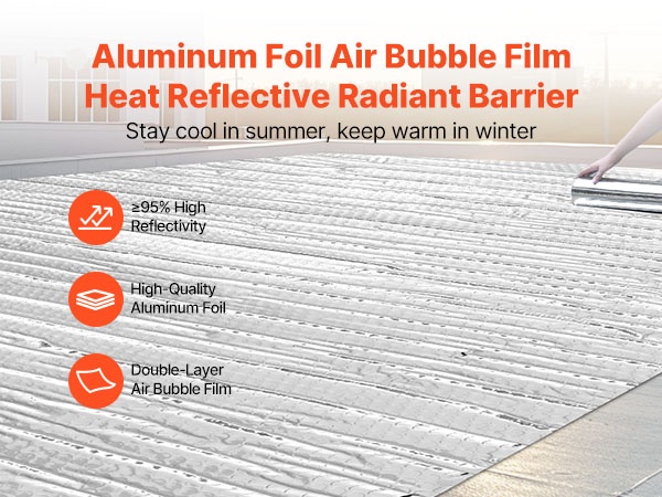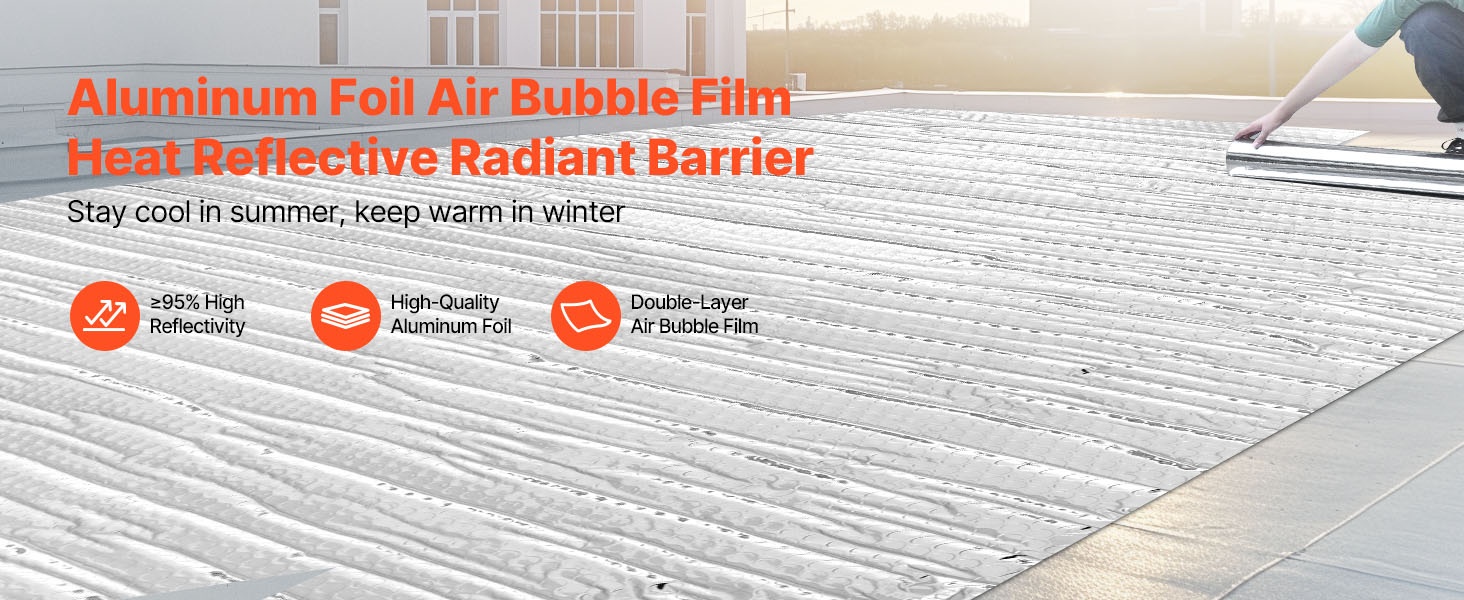 Kaksipuolinen heijastava eristerulla heijastaa ≥95 % lämpösäteilystä ja koostuu kaksinkertaisesta heijastavasta alumiinifoliosta sekä perforoidusta kudotusta kankaasta. Se auttaa estämään auringon kuumuuden pääsyn sisälle kesällä ja vähentää lämpöhäviöitä talvella, mikä auttaa pitämään sisälämpötilan miellyttävänä.