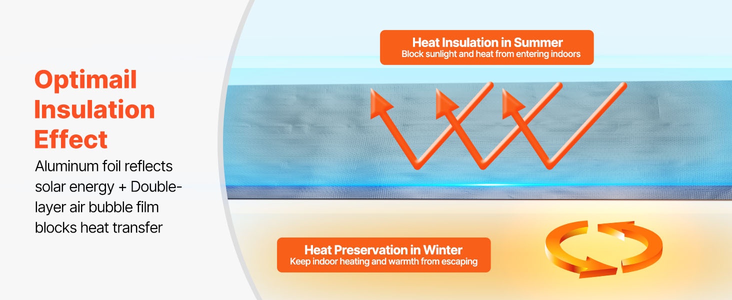 Kaksipuolinen alumiinifolio heijastaa suurimman osan auringon säteilystä, ja perforoitu kudoskerros parantaa ilmanvaihtoa. Yhdessä ne muodostavat lämpöeristerullan, joka auttaa vähentämään lämpökuormaa kesällä ja lämpöhäviöitä talvella.