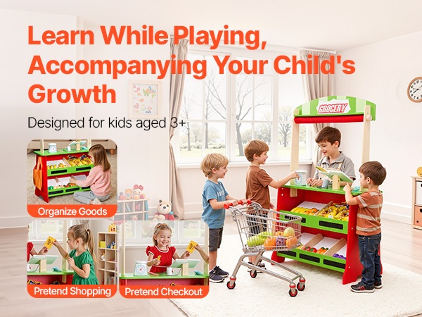 Kaksipuolinen rakenne ja yksityiskohtaiset lisävarusteet tekevät leikistä elämyksellisen. Lapsi voi harjoitella ostamista ja myymistä, rahankäsittelyä, vuorovaikutusta ja tarinankerrontaa leikin kautta.