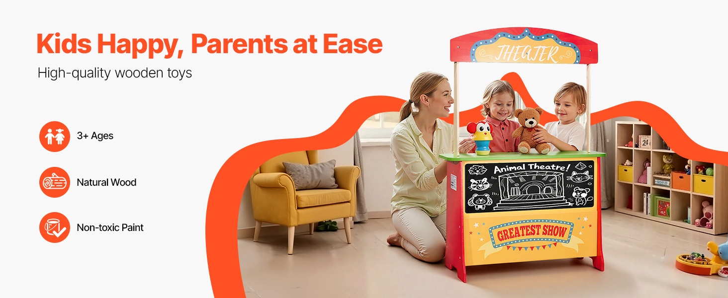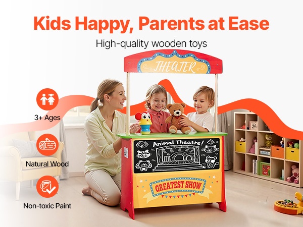 Kaksipuolinen MDF-leikkikauppa kauppakoju ja nukketeatteri yli 3-vuotiaille 69,5×33,5×102,8 cm