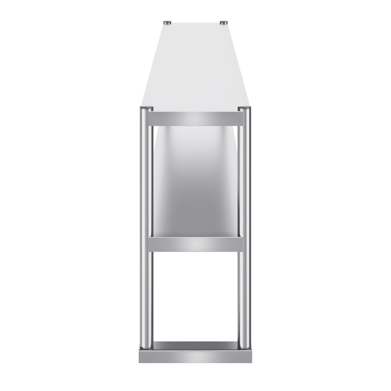 Kaksitasoinen ruostumattomasta teräksestä valmistettu ylähylly tarjoaa lisätyötilaa ja säilytystilaa ammattikeittiöihin, ravintoloihin, työpajoihin ja kotikäyttöön. Kompakti 12 x 72 tuuman rakenne sopii esivalmistelupöytien yläpuolelle ja auttaa pitämään tärkeät välineet ja tarvikkeet käden ulottuvilla.