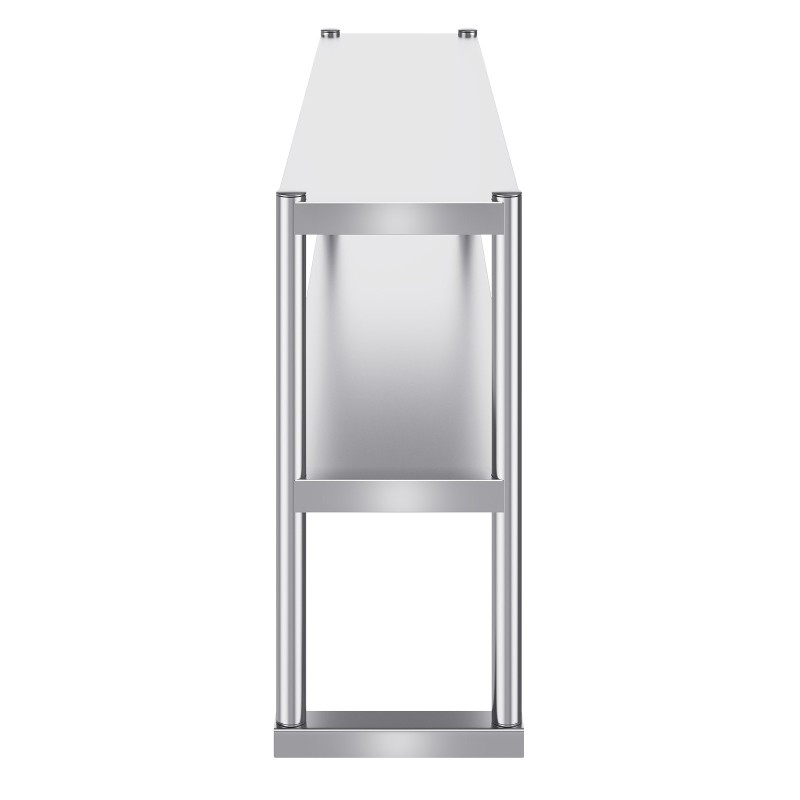 Tämä kaksitasoinen ruostumattomasta teräksestä valmistettu ylähylly muuttaa tavallisen työtason käytännölliseksi säilytys- ja työpisteeksi. Se soveltuu keittiöihin, ravintoloihin, baareihin, autotalleihin, verstaisiin ja muihin tiloihin, joissa tarvitaan kestävää ja helposti puhdistettavaa lisätilaa työtason yläpuolelle.