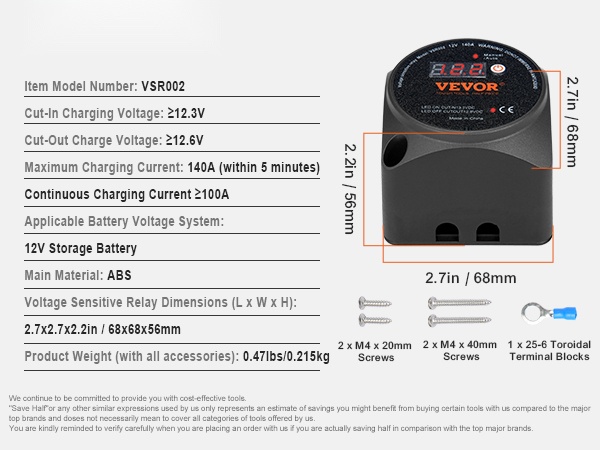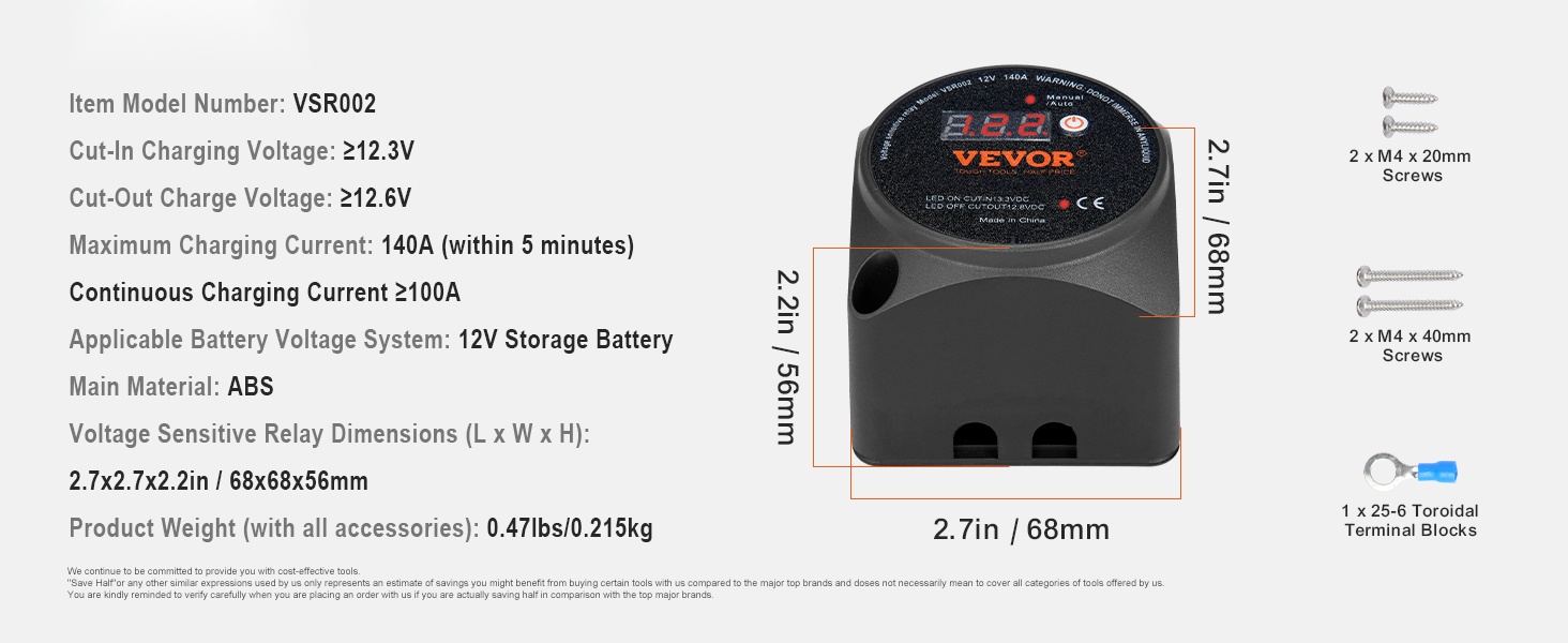 Kooltaan vain 2.7'' x 2.7'' x 2.2'' / 68 x 68 x 56 mm jänniteherkkä 140A-rele mahtuu ahtaampiinkin paikkoihin, kuten moottoritilaan tai maastoajoneuvon sisälle. Se integroituu sujuvasti kaksoisakkujärjestelmän osaksi.
