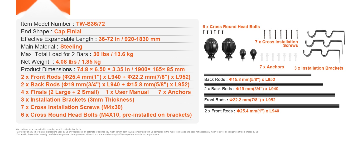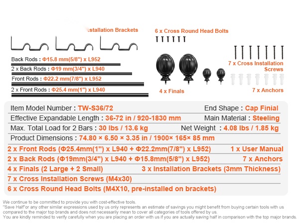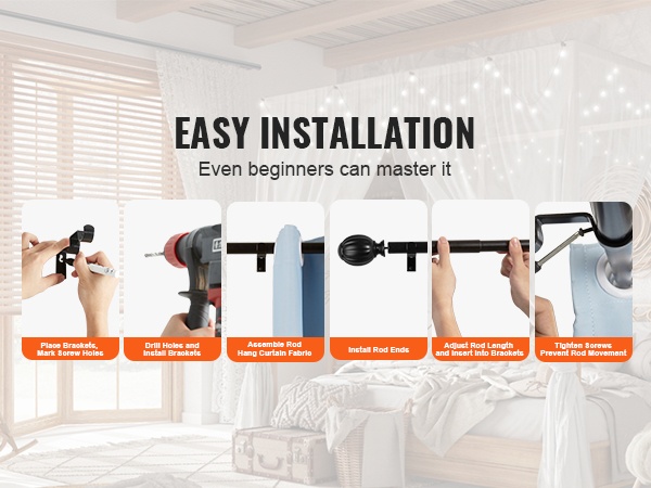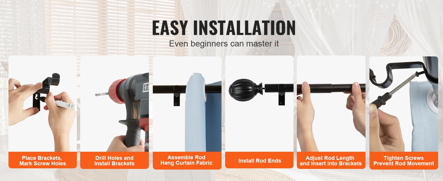 - Säädettävä pituus: 36–72 tuumaa (3–6 jalkaa), sopii useimpiin ikkunoihin