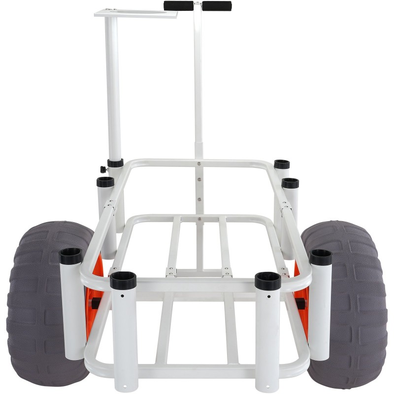 Tämä kalastuskärry on tukeva apuri rannalle, laiturille ja maastoon. Kestävä alumiinirunko, suuret 16-tuumaiset PU-ilmakumit ja tilava sisärakenne 41.5 x 18 x 8 in kuljettavat jopa 350 lbs varusteita. Mukana on 8 vapatelinettä, joten saat vieheet, onget ja muun kalastusvarustuksen siististi ja helposti mukaan.