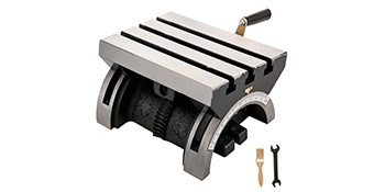 Tukeva kallistettava jyrsinkoneen pöytä on valettu rautaa ja soveltuu tarkkaan työstöön. Pöytää voidaan kallistaa 0-45 astetta (molempiin suuntiin), ja siinä on 3 T-uraa (10mm), säädettävä kampikahva sekä hienohiottu työstöpinta, jotka helpottavat kulmien asettamista ja parantavat työstön tarkkuutta.