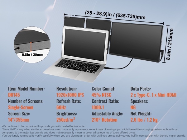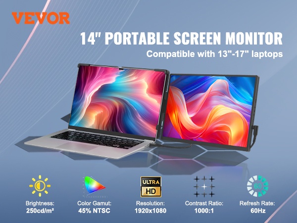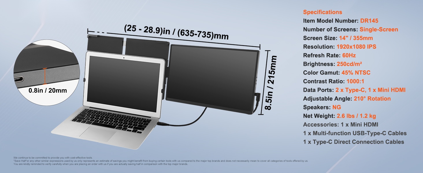 Tämä 14-tuumainen kannettava lisänäyttö tuo lisää tilaa työskentelyyn, opiskeluun ja viihteeseen. Terävä 1920x1200 IPS -resoluutio, 300cd/m² kirkkaus, 72% NTSC -väriavaruus ja 1000:1 kontrastisuhde tarjoavat selkeän ja luonnollisen kuvan sekä miellyttävän katselukokemuksen pitkissäkin työrupeamissa.