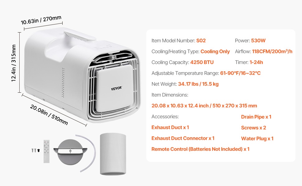 - Mitat: 20.08 x 10.63 x 12.4 inch / 510 x 270 x 315 mm