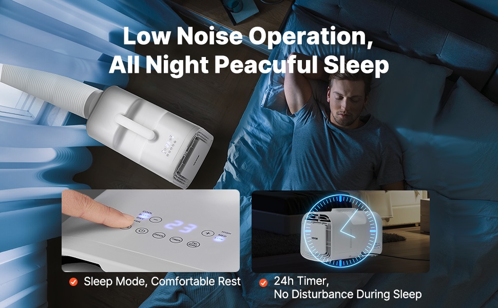 Unitilassa laite käy matalammalla äänitasolla, mikä tekee siitä sopivan yökäyttöön teltassa, matkailuautossa tai makuuhuoneessa. 1–24h ajastimella voit asettaa laitteen sammumaan automaattisesti, jolloin se ei käy turhaan yön yli.