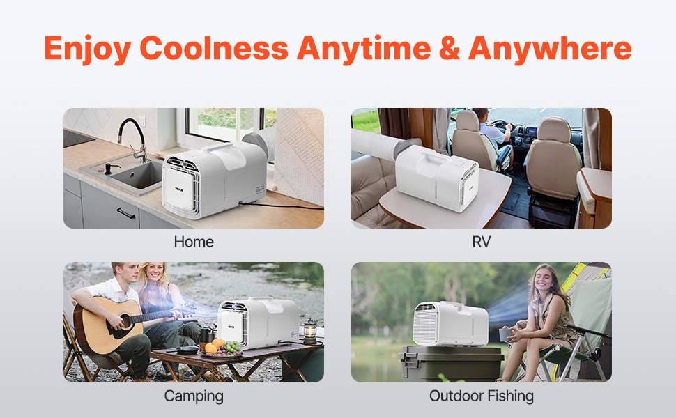 Kuuma kesä voi tehdä telttailusta tai matka-autoilusta tukalan. Tämä kannettava ilmastointilaite on kevyt, helppo kantaa ja nopea asentaa. Se viilentää tilan nopeasti, joten olosi pysyy miellyttävän raikkaana teltassa, matkailuautossa, pienissä ulkotiloissa ja kotona.