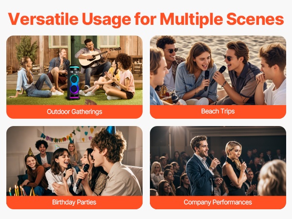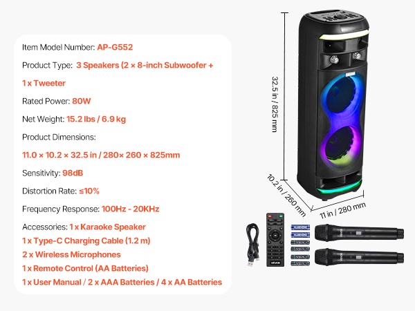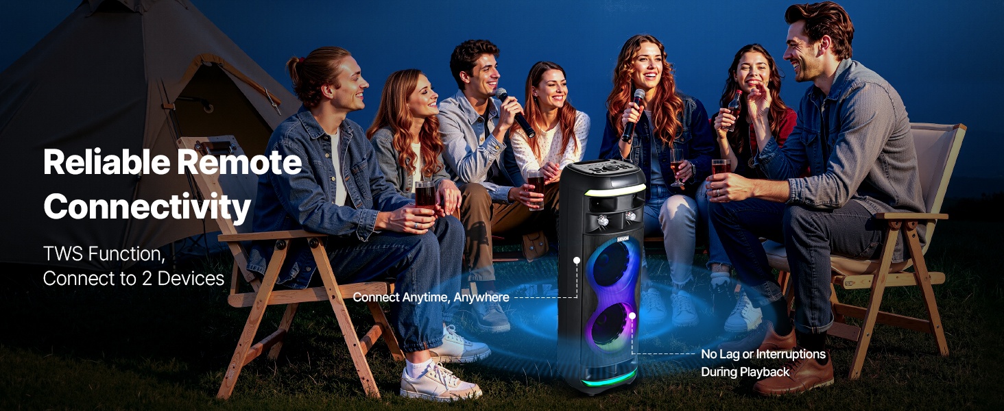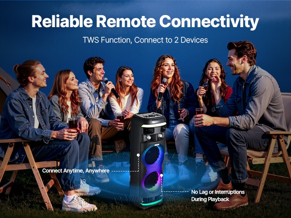 Kannettava 15W karaoke-kaiutin tarjoaa helpon tavan järjestää lauluiltoja kotona ja pienissä tai keskisuurissa juhlissa. Mukana on 2 langatonta mikrofonia ja TWS Bluetooth 5.1 -toiminto, joiden ansiosta voit laulaa taustamusiikin kanssa ja nauttia viihdetasoisesta karaokekokemuksesta missä ja milloin tahansa.