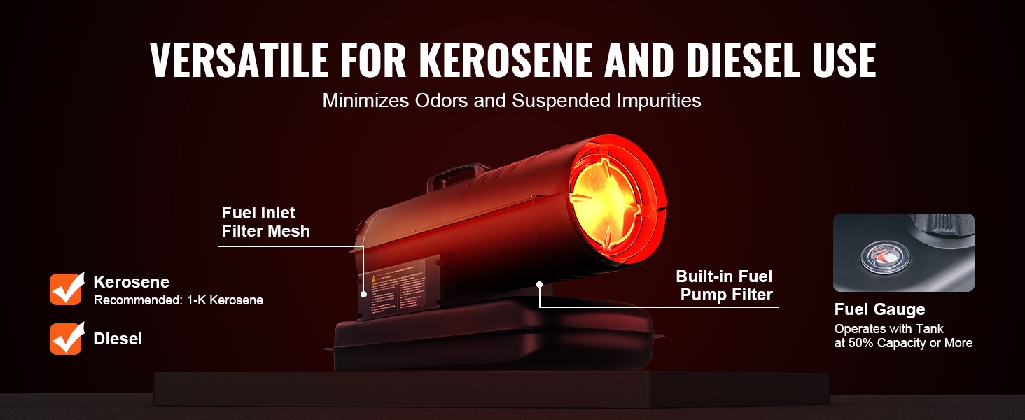 Kannettava kerosiinilämmitin teräsrunko 10000 BTU 14 L säiliö sisä ja ulkokäyttöön