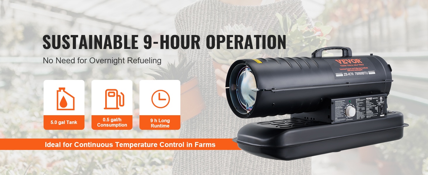 Tämä kerosiinilämmitin tuottaa voimakkaan, tasaisen lämmön muutamassa minuutissa. Se sopii sekä sisätiloihin, kuten olohuoneeseen ja autotalliin, että ulkokäyttöön esimerkiksi leirintäalueilla. Hiljainen käyntiääni ja suuri teho pitävät isotkin tilat miellyttävän lämpiminä.