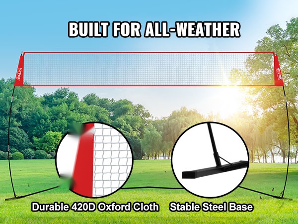 Settiin sisältyvät vahvistetut pylväät tuovat vakautta erityisesti ulkotiloissa. Teräspylväät on suunniteltu kestämään vaihtelevia sääolosuhteita ja pitämään verkon tukevasti paikoillaan pelin aikana.