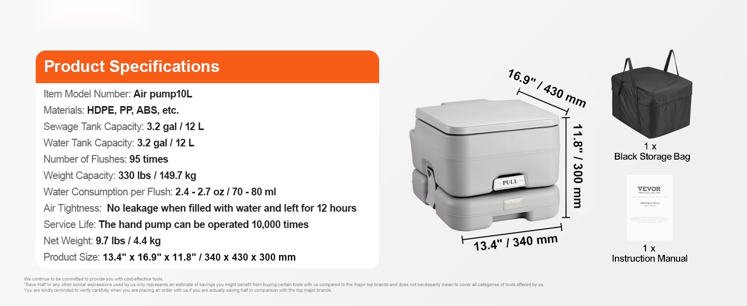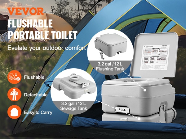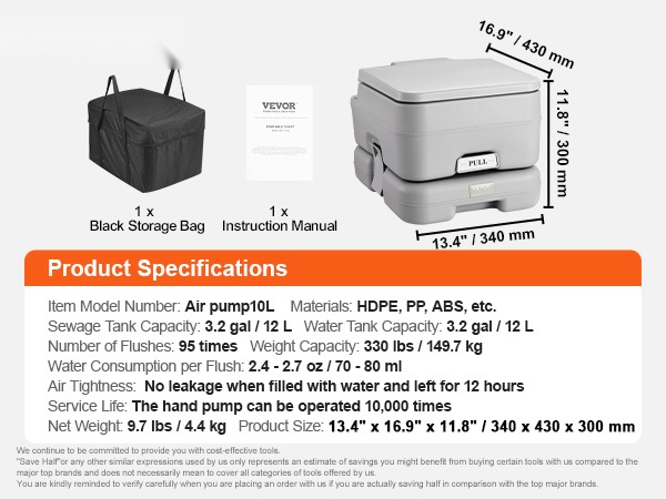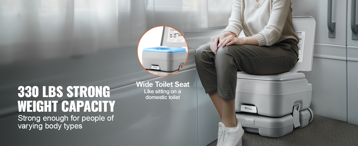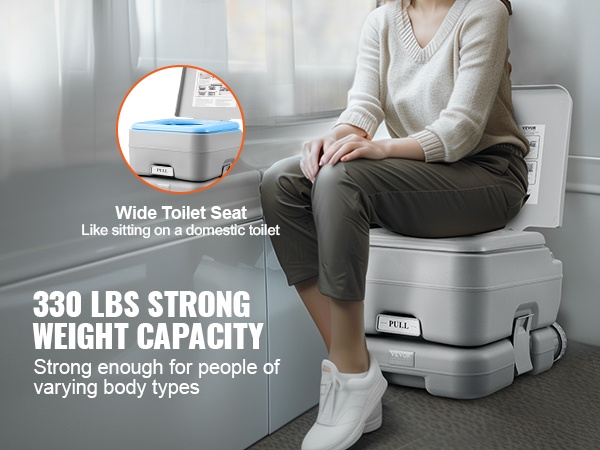 Tässä kannettavassa WC:ssä on irrotettava 2.6 gal huuhtelusäiliö ja 3.2 gal jätesäiliö, ja sen kantavuus on 440 lbs. Se soveltuu hyvin esimerkiksi raskaana oleville ja ikääntyneille, sillä istuin on mukava ja tukeva. Kompaktin kokonsa ansiosta WC sopii käytettäväksi asuntoautoissa, veneissä, kuorma-autoissa, pakettiautoissa, leirintäalueilla ja automatkoilla.